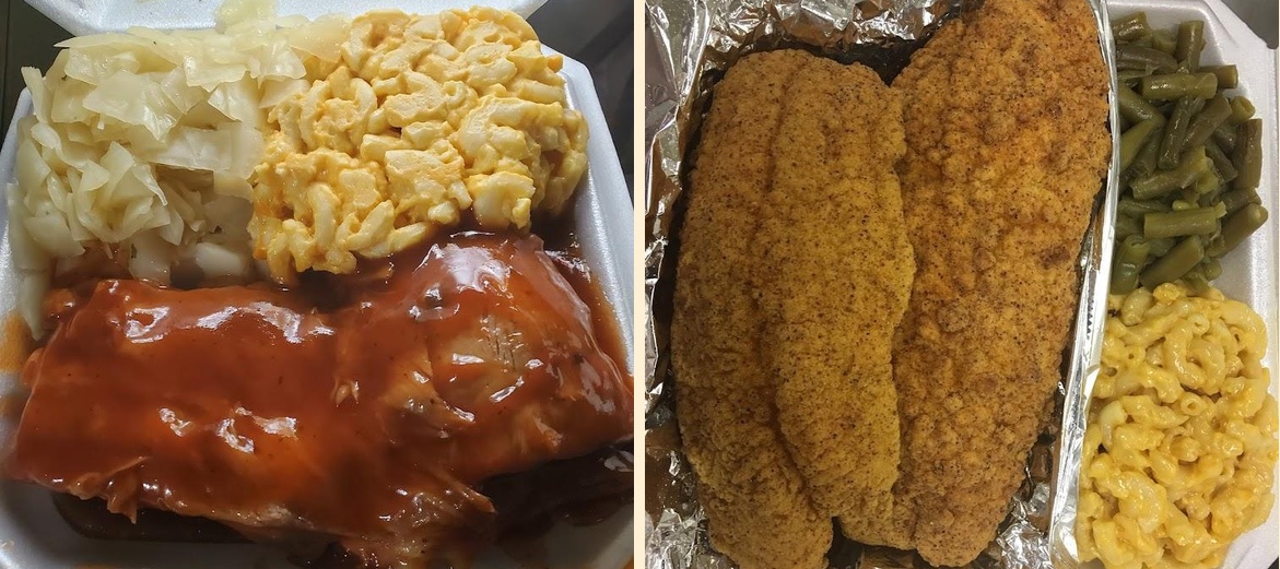 Popular dishes include BBQ ribs, turkey wings, and macaroni cheese. Don't skip the sweet potato pie for dessert. It's a crowd favorite!